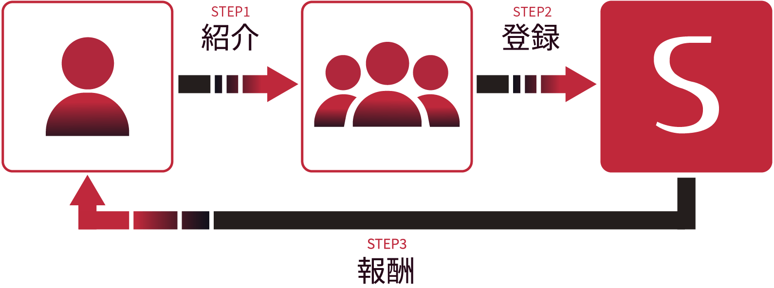お客様がお持ちのWEBサイト上でSugarDaddyの宣伝をして頂いたり、直接お知り合いの方にSugarDaddyをご紹介して頂き、お客様のご紹介でSugarDaddyにご登録頂いた人数に応じて、成果報酬をお支払いさせて頂きます。